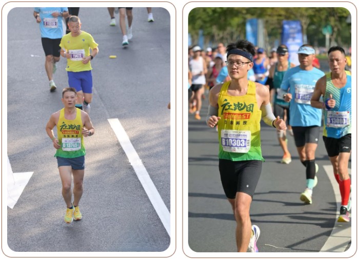 在比賽當(dāng)天,廣工大的隊員們穿著統(tǒng)一的日東科技定制運動服,在陽光明媚的早晨出發(fā)。他們用腳步丈量城市的每一寸土地,呼吸著清新的空氣,享受運動帶來的快樂!沿途觀眾的熱情加油聲此起彼伏,為選手們注入了源源不斷的動力。最終,廣工大所有隊員都成功完成了全程的比賽,以實際行動詮釋了什么叫堅持到底,其中,黃文龍選手以2:45:53的凈成績跑完全程,在17195名參賽者中獲得了排名101的好成績!