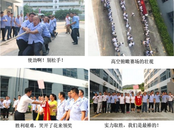 歡呼聲突然伴隨著哨聲響起,裁判宣布生產(chǎn)隊取得了第一輪的勝利。售后與人力行政聯(lián)隊力戰(zhàn)銷售與財務聯(lián)隊、供應鏈聯(lián)隊,拿下兩連勝的佳績,沖入決賽,與勁敵生產(chǎn)隊正式PK。挑完邊,兩邊的選手都已在欲欲躍試,顯得迫不及待要與對手開始撕殺分個高下,繩子被雙方拽得緊緊地一動不動,哨響旗落,加油聲此起彼伏,隊員們咬緊牙,臉崩得通紅,不敢放松一下?!摆A了”,一邊的人群突然歡呼起來,售后與人力行政奪得拔河比賽的最終勝利!