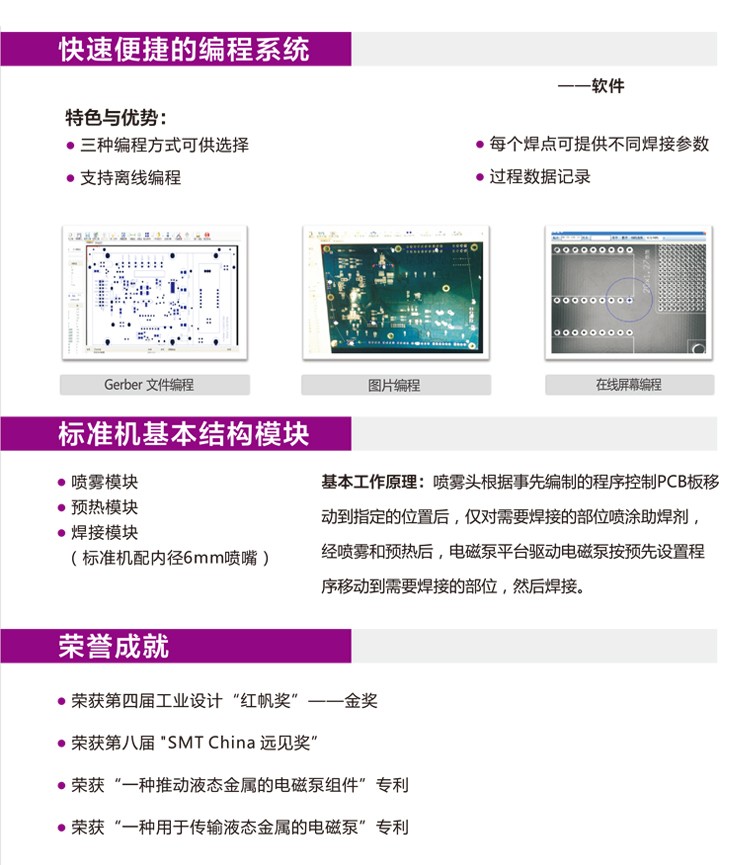 擺在企業(yè)面前的這些嚴格的要求自然反映在生產(chǎn)設(shè)備上,這也正好說明了為什么在過去幾年中,選擇性波峰焊接技術(shù)會在電子生產(chǎn)領(lǐng)域比其它工藝發(fā)展得更迅速。由于無鉛焊接技術(shù)的要求,新的生產(chǎn)工藝問題在不斷出現(xiàn)。例如,無鉛焊接工藝需要更高的焊接溫度;無鉛焊料冷凝得更快;金屬和銅在無鉛合金焊料中要比在錫鉛焊料中溶解得快。這些更嚴格的條件意味著,生產(chǎn)中需要合適的焊接設(shè)備來有效、可靠地應(yīng)對無鉛焊接所帶來的腐蝕性。選擇性波峰焊一貫堅持其特性必須符合無鉛選擇性焊接工作藝的要求,并向用戶提供了針對各種類型選擇性焊接應(yīng)用的多種產(chǎn)品選擇范圍。
