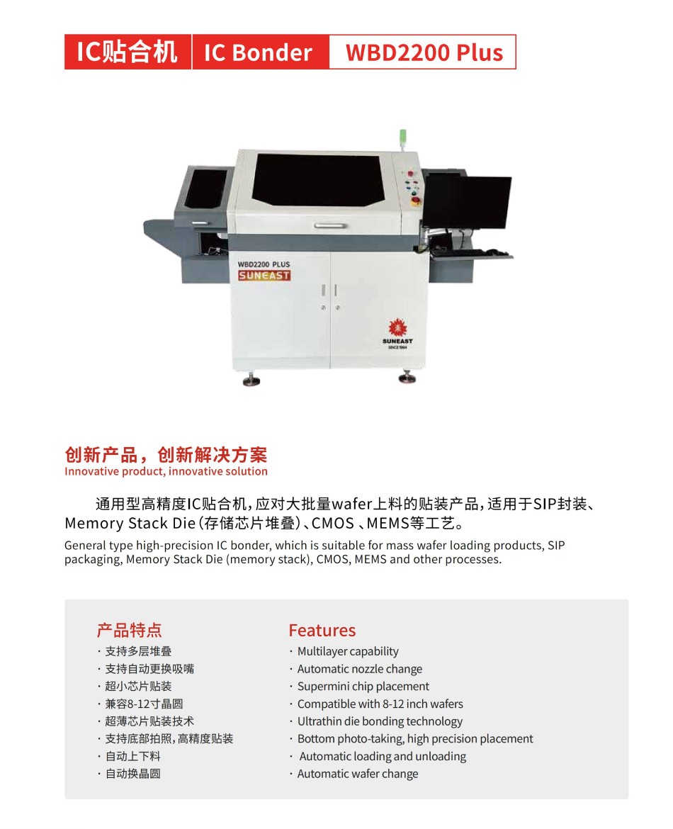 通用型高精度芯片貼合機(jī),應(yīng)對(duì)大批量wafer上料的貼裝產(chǎn)品,適用于SIP封裝、Memory Stack Die(存儲(chǔ)芯片堆疊)、CMOS 、MEMS等工藝。主要應(yīng)用于車載電子、醫(yī)療電子、光電子、手機(jī)等行業(yè)領(lǐng)域。